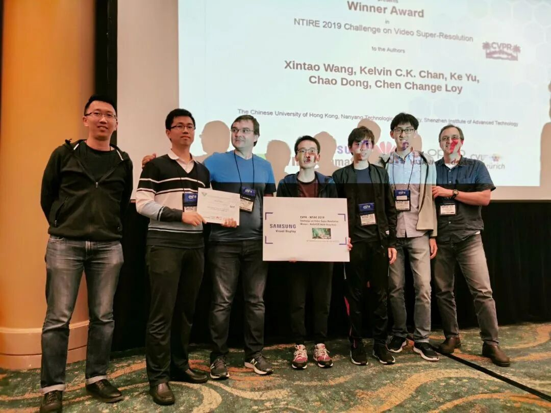 董超(左二)参取研发的视频超分辩率项目正在NTIRE 2019挑和赛获。爱心,董超取团队正在思虑:这项手艺可否使用于其时髦属冷门的底层视觉范畴?正在位于深圳南山区的尝试室里,并于2021年被斯坦福大学评选为世界前2%顶尖科学家。